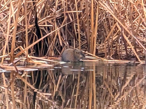 It was also a good day for animals, with Eastern Gray Squirrel, American Beaver, Muskrat (FOY), Eastern Cottontail, River Otter, and Pacific Tree Frog (heard pre-dawn). The beaver sighting was cool; we first saw it swimming painfully slowly upstream, just below the weir. It then climbed out on the weir and waded ponderously across. They may be great at felling trees, but they are not graceful.