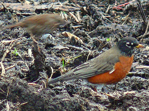 American Robin with Song Sparrow. Photo by Ollie Oliver |