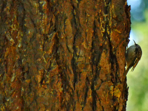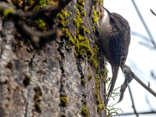 The pea patch was dead - no birds. As we walked toward the mansion we could hear probably GOLDEN-CROWNED KINGLETS high in the trees, but the wind had picked up by then and we never got a really good view. As we approached the shelter across from the cars we had a nice flock of GOLDEN-CROWNED KINGLETS (close views), CHESTNUT-BACKED CHICKADEES and a BROWN CREEPER.