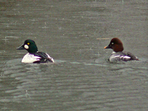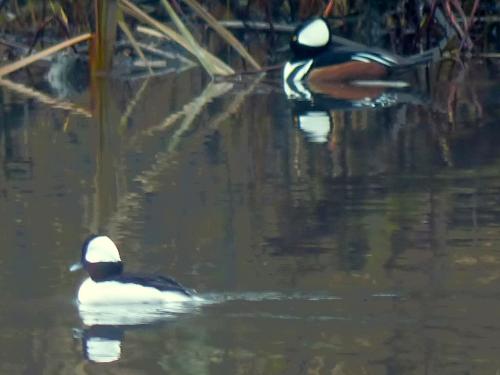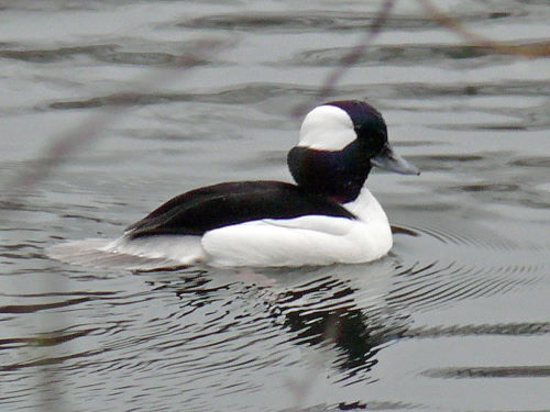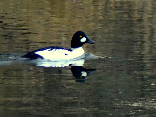 Common Goldeneye on the lake (Pied-billed Grebe in the background).