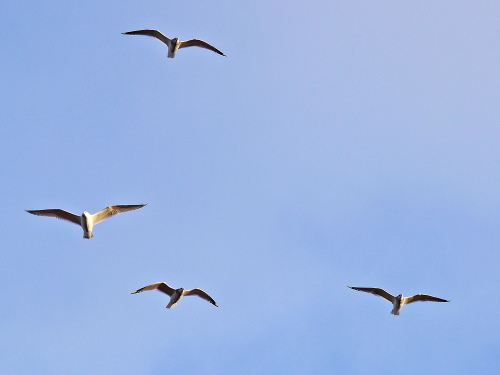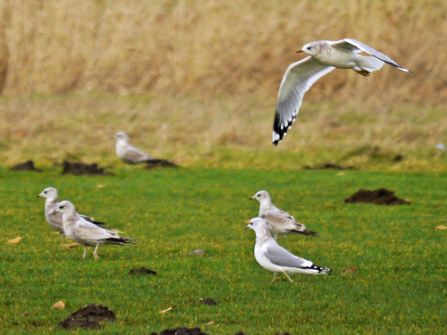 - Short-billed Gull - About 150, with a couple of RBGU and some GWGU; our first big flock of gulls on the ground this winter