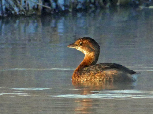 As we walked the interpretive path, Rachel spotted a nice drake WOOD DUCK, who gave us quick looks before hiding along the river. Out at the platform, there was one BALD EAGLE in the usual place in the near cottonwood tree and another with prey on one of the pilings. BUFFLEHEAD were present in large numbers along the river and at the lake (probably in excess of 40 - they kept moving around). A couple of PIED-BILLED GREBES near the pier. No response from rails today.