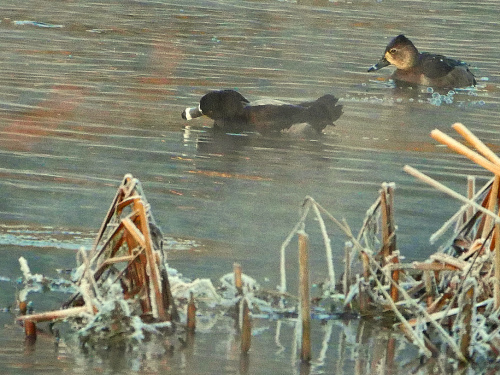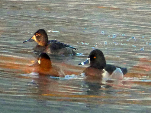 The late scan of the lake also turned up our only RING-NECKED DUCKS plus a HORNED GREBE