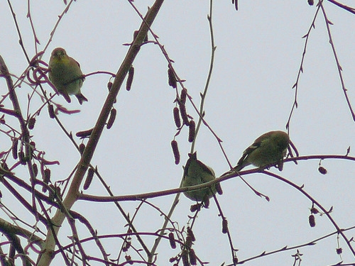Ollie's photo of American Goldfinches in a Red Alder just south of the dog area