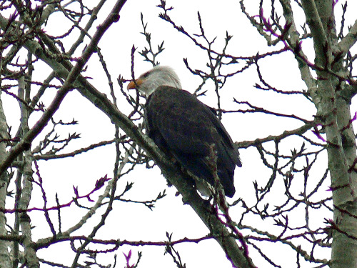 Adult Bald Eagle in a Black Cottonwood near the weir. Photo by Ollie Oliver.