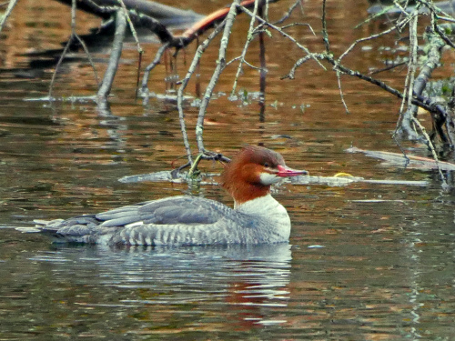 A late scan of the lake turned up three COMMON MERGANSERS, a HORNED GREBE, and he flock of AMERICAN COOTS that must have been off to the east out of sight when we were at the Lake Platform earlier in the morning.