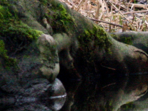Face hidden in the roots of a tree along the shore of the slough. Photo by Lillian Reis |