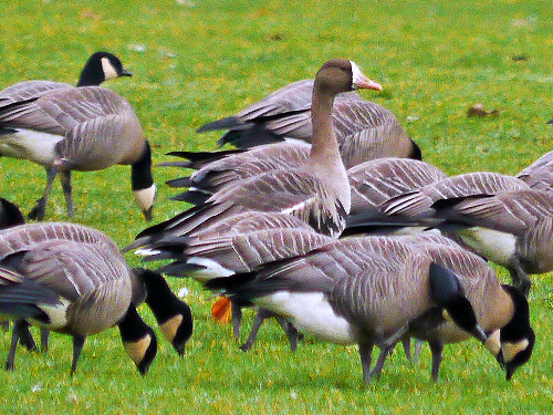 Greater White-fronted Goose with Canada Geese. Photo by Ollie Oliver |