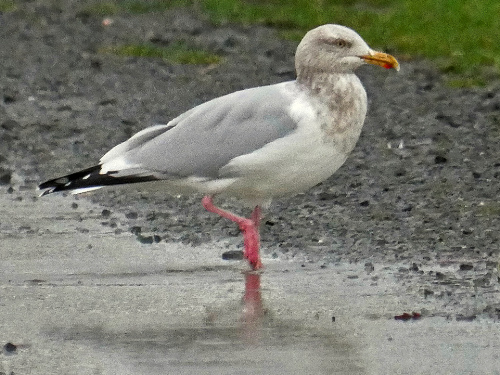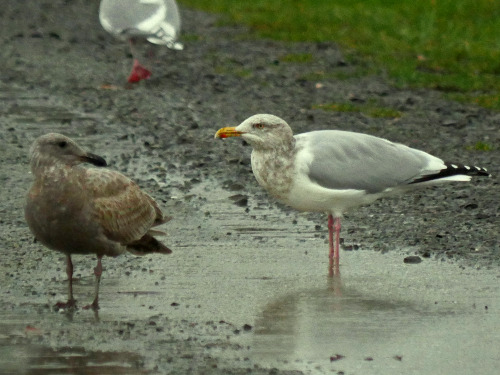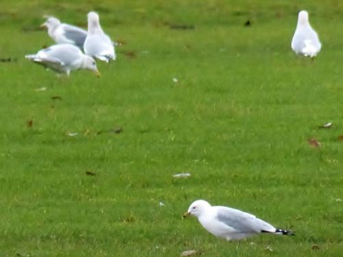 - Ring-billed Gull - two among a flock of Short-billed and GW Gulls on grass soccer fields. First of Year (FOY)