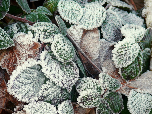 Frost on blackberry leaves