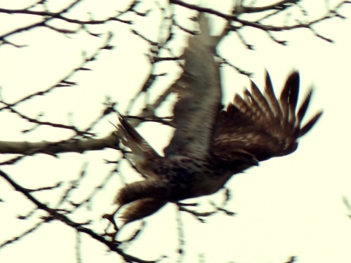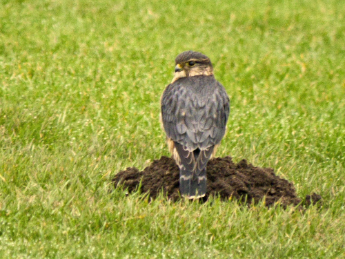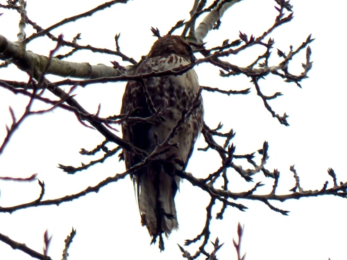 - Merlin – one flying with prey – First of Year for us. Later, we saw possibly the same bird near the mansion, sitting motionless for a long time at the top of a fir. Must have been filling prey