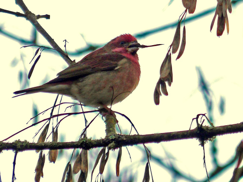 Purple Finch, male, in Oregon Ash. Photo by Ollie Oliver