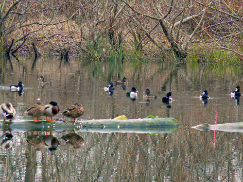 Mallards and Ring-necked Ducks at the Rowing Club pond. Photo by Ollie