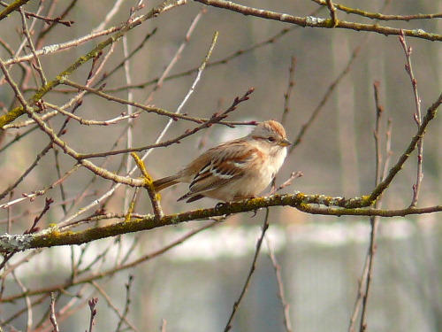 The AMERICAN TREE SPARROW was again seen around the Compost Piles. We missed it, but Jeff went back and found it, so after the Rowing Club, I went over and we found it again. This is the 5th week for this individual.
