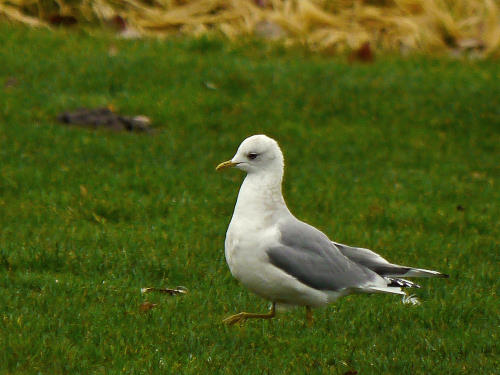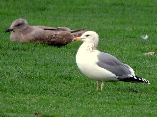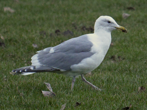 When we first arrived in the morning, there were a few gulls on the grass fields near where we park. We were searching through them for RING-BILLED GULL (there were a few among the MEW GULLS and GLAUCOUS-WINGED GULLS). There was also a larger black wing-tipped gull at the far end of the field that I first thought was probably our usual, singular, WESTERN GULL (he showed up later). But the head was dusky, and yet it didn't look right for a GWGUxWEGU hybrid. The more I looked, the more I got suspicious. Guys, this wouldn't be a Herring, would it?" We got out a scope, but even so, it was too far to tell. However, after having walked halfway across the field, we were able to get decent, confirming looks. Previously, we'd had only one very uncertain maybe in mid-October, 2004. So it was very nice to add this species to the park list!