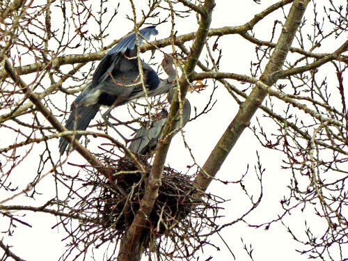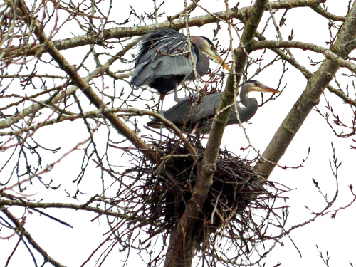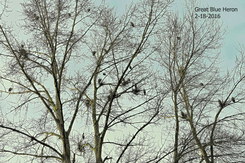 - Great Blue Heron – They’re Back – More than 60 were perched in the heronry, many sitting next to, or on nests