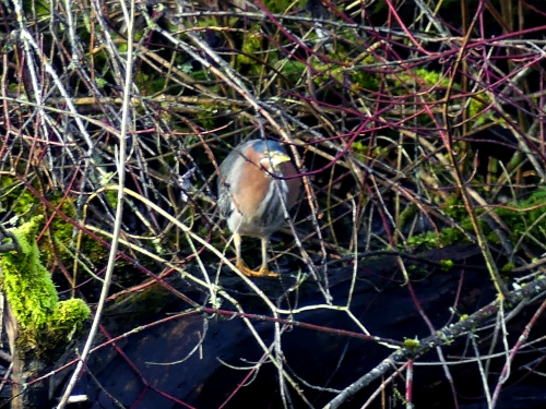We had a great day at Marymoor today. The weather was delightful, starting out just above the freeze and warming, no wind, quite a bit of sun. Really very pleasant. It was pretty birdy too. Water levels were back up - you need tall boots again to get to the boardwalk. Humor levels were somewhat below usual, as Matt Bartels is working a temp job and missed Marymoor today.