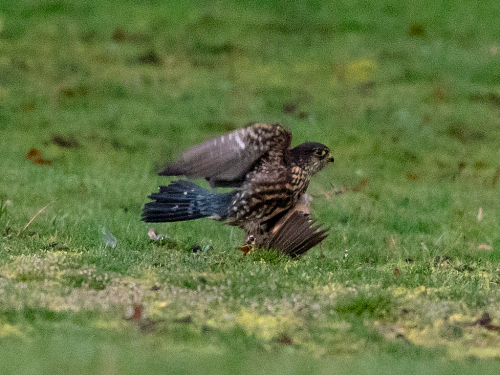 - Merlin - One caught and killed an American Robin at the very start of our walk. Flew off with it to eat