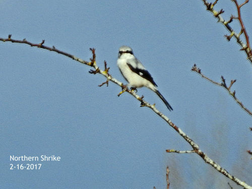 - Northern Shrike – one ENE of the Viewing Mound, seen by half the group