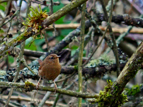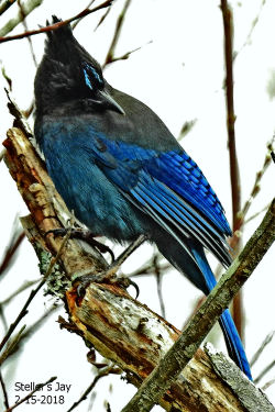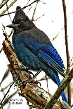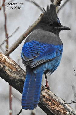 Singing birds today included ANNA'S HUMMINGBIRD, BLACK-CAPPED CHICKADEE, PACIFIC WREN, BEWICK'S WREN, RUBY-CROWNED KINGLET, AMERICAN ROBIN, HOUSE FINCH, PURPLE FINCH, GOLDEN-CROWNED SPARROW, SONG SPARROW, DARK-EYED JUNCO, and RED-WINGED BLACKBIRD. An ANNA'S HUMMINGBIRD was doing display flights and a NORTHERN FLICKER was drumming. Feels like spring for many of our birds.