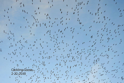 - Cackling Goose – probably 2000 total, with many landing on the grass soccer fields