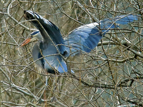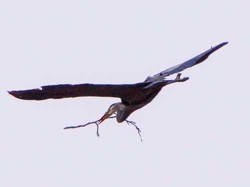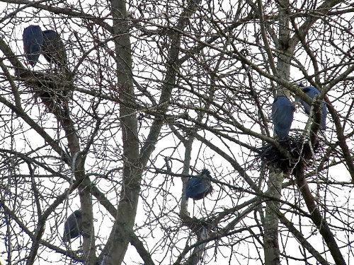 - Great Blue Heron – nest building at the heronry, many herons about. There are at least 40 nests in the heronry, with several possible starts of more