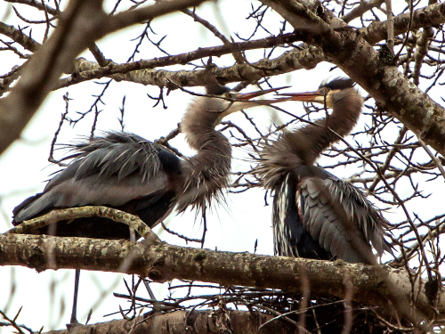 - Great Blue Herons - Nearly 70 at the nests, with some nest building observed