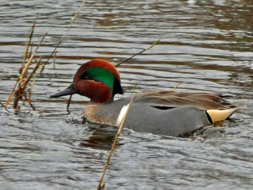 - American Wigeon – about a dozen below the weir. We seldom see these when the park is not flooded (and it’s currently not flooded)