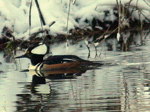We had two male HOODED MERGANSERS in a dancing competition to impress one of the ladies. At least one or two NORTHERN FLICKERS were drumming. And Dark-eyed Juncos were singing non-stop.