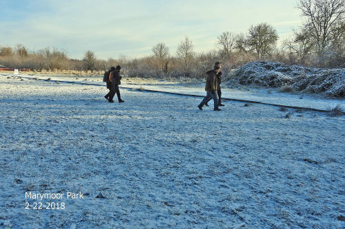 It was a frosty 29 degrees to start the walk, but it warmed due to no wind and bright sunshine. It feels unfamiliar to even type “sun”. Pretty birdy at times too. The water has mostly receded, though the southern end of the off-leash Dog Area is still closed. But we were able to get to the boardwalk from the east end. The boardwalk had only a little water over one section (2”), but had a fair amount of debris left from the flooding. Luckily, while much of it was actually floating for about a week, it managed to settle relatively level.