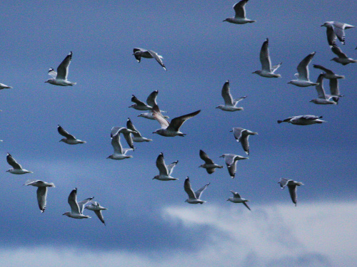 Mew Gulls, with a juvenile Ring-billed Gull, center. Photo by Lillian Reis, 2/27 |