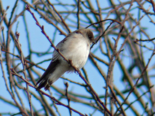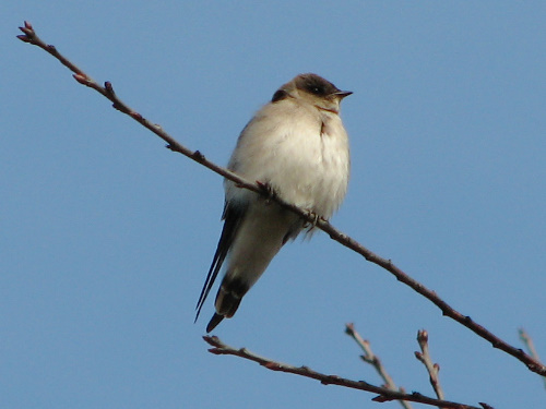 Very early Northern Rough-winged Swallow, in a tree by the Compost Piles