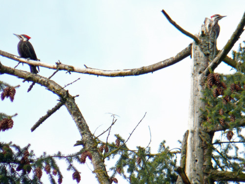 Pair of Pileated Woodpeckers atop a broken Douglas Fir east of the mansion.
