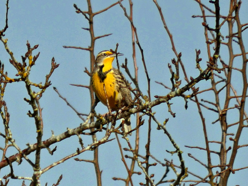 - Western Meadowlark - Two between Viewing Mound and model airplane field, singing (FOY)