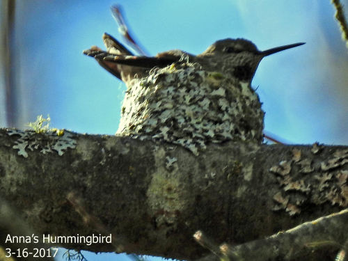 - Anna’s Hummingbird - Female again on nest near start of boardwalk