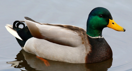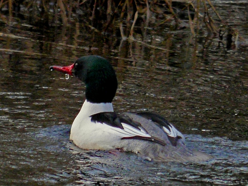 Male Common Merganser in slough. Photo by Ollie Oliver