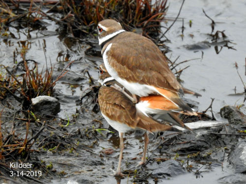 YELLOW-RUMPED WARBLER and FOX SPARROW singing today; first of spring. The Fox we heard wasn’t really coming out with a full, loud song yet.