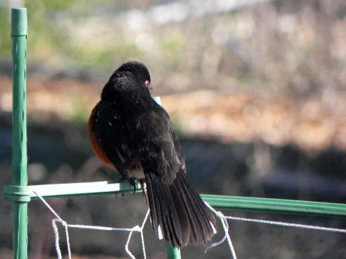 Note the red eye of the Spotted Towhee. Photo by Michael Hobbs