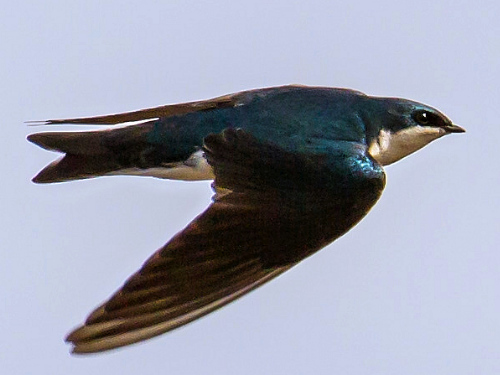Fairly early on, we had a very high-flying flock of white-bellied swallows, so it was great that we had the later sighting of both VIOLET-GREEN and TREE SWALLOWS down close and personal. Violet-greens outnumbered Trees by about 5-1.