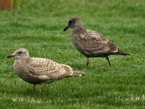1st winter Western Gull, behind 1st winter "Olympic" gull. Photo by Ollie Oliver