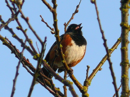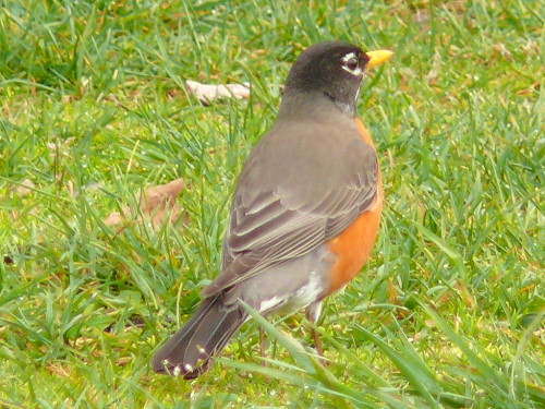 Not a bad day, with temps in the 40's, partly sunny skies, and with winds only coming in sporadic gusts. Most of the time, though, it felt like we were watching reruns of the last three weeks at the park, only with fewer birds. Except for American Robins which remain superabundant. We did end up with some highlights, but they mostly came late.
