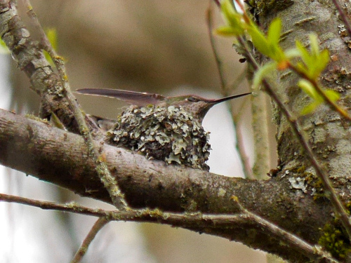 - Anna's Hummingbird - Found a female on a nest above the Rowing Club parking lot