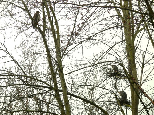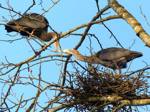 At the heronry, several nests have been started in the next cottonwood south of the existing heronry. About 1/3 of the existing nests were lost in the bomb cyclone this winter when three trunks came down, so I was expecting this southern expansion. Also, a few heron egg shells are on the ground under the nests. Not positive if these indicate hatching already, but they do confirm egg laying has already begun.