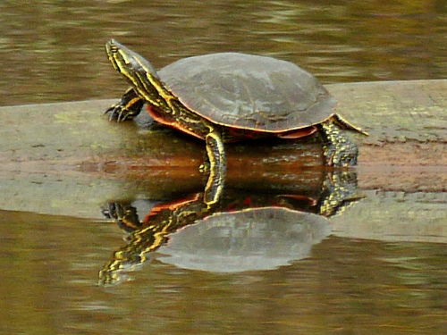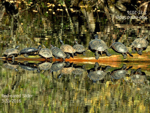 Painted Turtles were back on the rowing club pond, a number of garter snakes were out in the sun and bullfrog was basking on a limb
