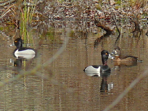 Note the burgundy neck ring on the right of the two male Ring-necked Ducks