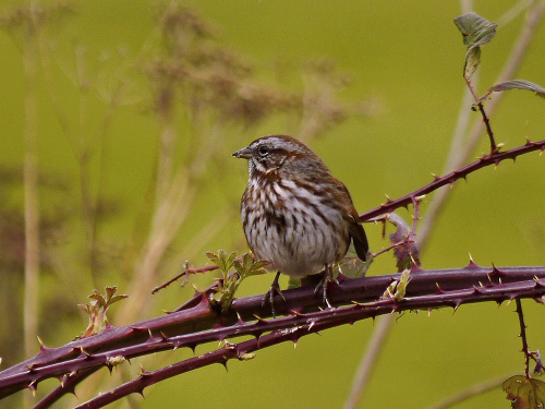 Lincoln's Sparrow 2 - Compost piles early, Pea Patch