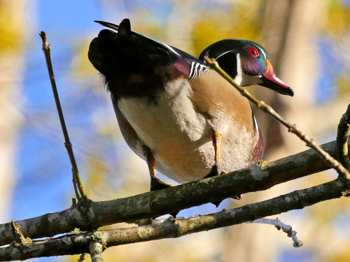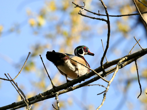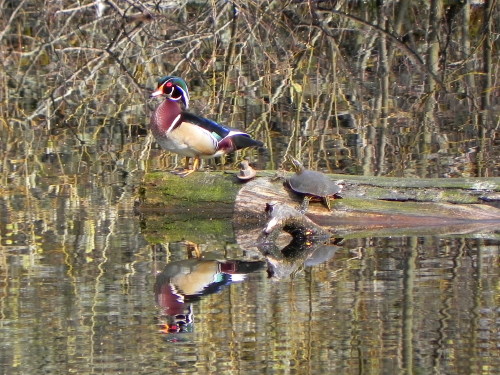 Male Wood Duck with Painted Turtle at the Rowing Club. Photo by Michael Hobbs