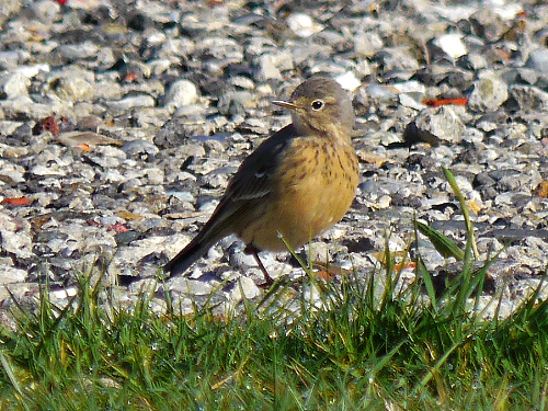 - American Pipit - Small flock at model airplane field; we saw them from the Viewing Mound, then Brian drove over and verified (FOY)