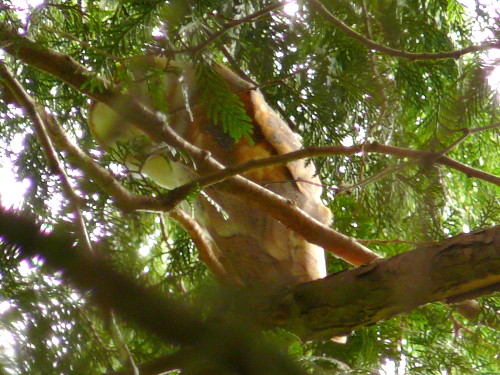 Barred Owl in the large Weeping Willow along the path at the Rowing Club |
