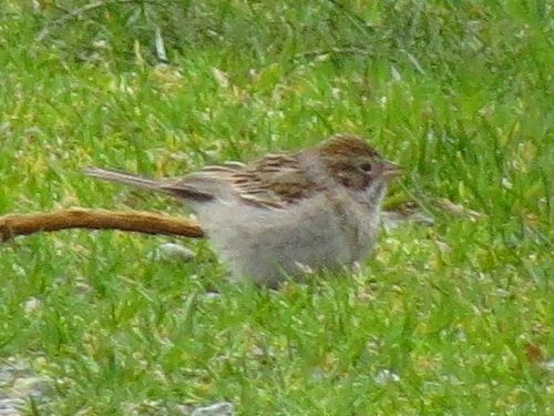 The AMERICAN TREE SPARROW was glimpsed a couple of times at the northeast corner of the compost piles. It disappeared to the north, but later flew to the south side of the dirt piles. Nobody got very good looks at it until it landed at Matt's feet, then hopped to an exposed area where we could all see it for a minute. Then it flew back to the northeast again. Very active, and perhaps that indicates it won't stick around. This is just our 3rd Marymoor ATSP sighting.